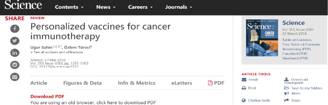 2018年5月,德国科学家Ugur Sahin教授在《Science》杂志发表肿瘤新抗原研究权威综述“Personalized vaccines for cancer immunotherapy”,文章引起了业内广泛的关注。