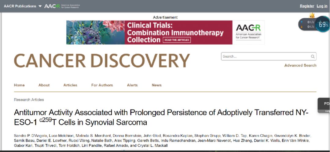 美国癌症研究所的Steven Rosenberg教授团队最早开展了TCR-T治疗晚期滑膜肉瘤和晚期黑色素瘤的临床研究。他们于2011年3月在《Journal of Clinical Oncology》上报道了初步研究结果。